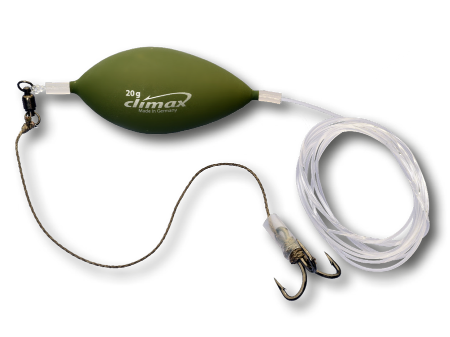 Ausstattung: VMC Haken, kugelgelagerte Wirbel, abriebfeste Mono und Catfish Strong Schnur, U-Pose 20g. Die Länge der Montage kann individuell angepasst werden.