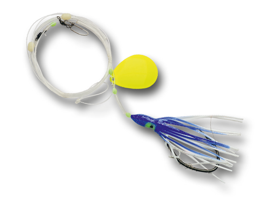 Diese Ködermontage für den Fang von Großleng ist eine absolute Neuheit. Anstatt zwei Einzelhaken kommt bei dieser Montage ein großer Drilling mit einem Flatterköderfisch zum Einsatz. Hierzu kann sowohl ein Köderfisch als auch ein Gummifisch verwendet werden.