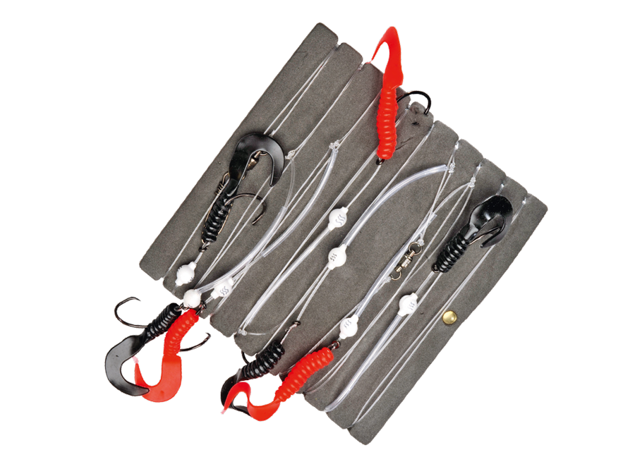 Die Rotbarschmontage wurde so konzipiert, dass durch das Montieren der 7 Circle Hooks in verschiedenen Abständen die Rotbarsch Schwärme in größeren Tiefen gezielt gesucht werden können. Die montierten Twister üben einen unwahrscheinlichen Reiz auf die Rotbarsche aus und sorgen für eine hervorragende Bissquote. Zusätzlich sorgen die transparenten Schläuche an den Seitenarmen und die Schwimmperlen für einen optimalen Schutz vor Verwicklungen und scharfen Zähnen.