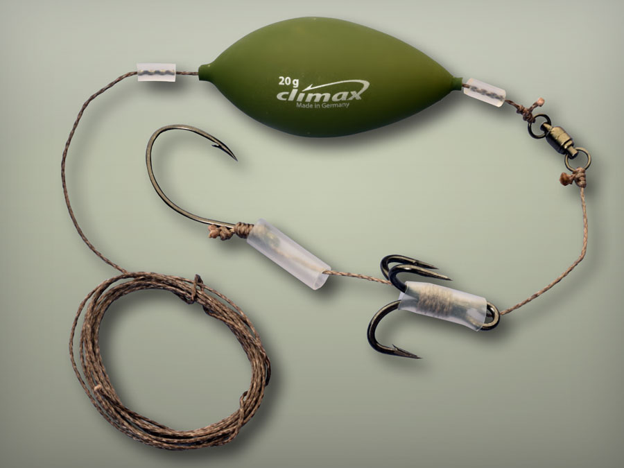 Das ORIGINAL BUNGEE-RIG reduziert die Fehlbiss-Quote! Es ermöglicht dem Fisch eine ungehinderte Köderaufnahme! Kein Gegenzug durch eine gespannte Schnur bzw. Rute oder Gewicht am Boden lässt den Wels misstrauisch werden und den angebotenen Köder wieder loslassen. Auch an Gewässern mit starken Befischungsdruck kann das Original Bungee Rig von Vorteil sein! Ein dem Ködergewicht entsprechender qualitativ hochwertiger Gummizug wird von Hand in ein abriebfestes Aramid-Gefelcht eingespleisst. Diese Kombi aus Aramid und Gummi sorgt für den „Bungee-Effekt“, die Pufferwirkung bei der Köderaufnahme. Erst wenn sich der Fisch mit dem Köder im Maul wegdreht hat und sich das Original Bungee Rig bis zum Maximum gedehnt hat, erfolgt der Gegendruck von der Rute.
