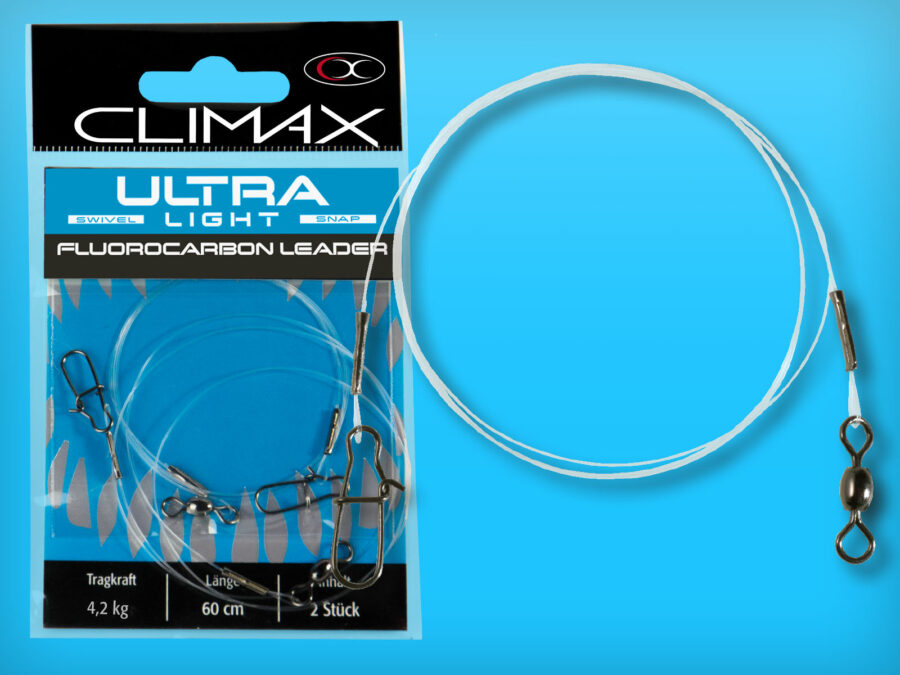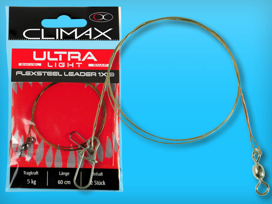 Für die ULTRA READY-LEADER werden wie auch bei den HOOK LEADERN nur hochwertigste Climax Vorfachmaterialien verwendet. Zusätzlich sorgen stabile Wirbel und ein Cross Lock Snap im Drill für Sicherheit.
